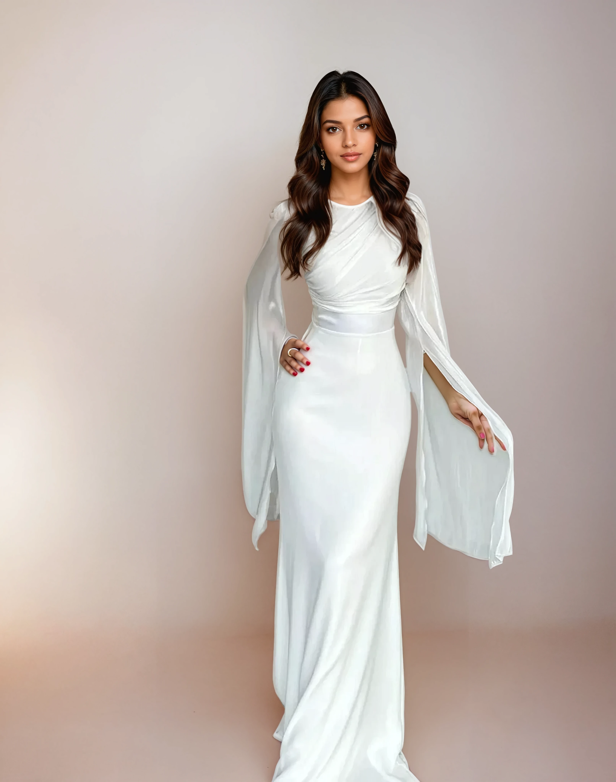 Classic White Modest Satin Maxi Dress – Long Silhouette with Split Sleeves