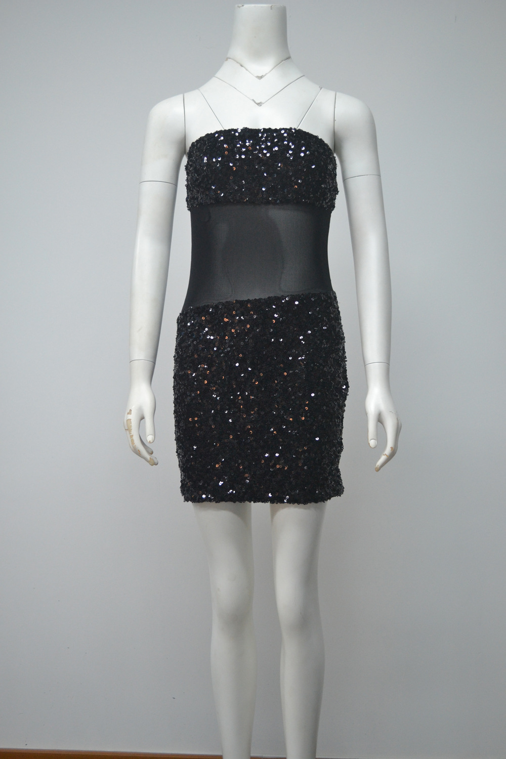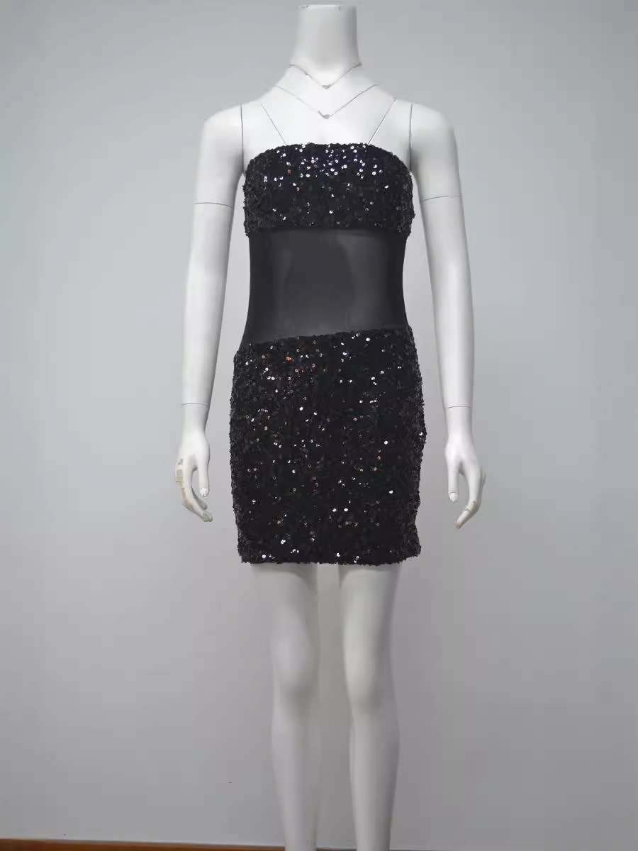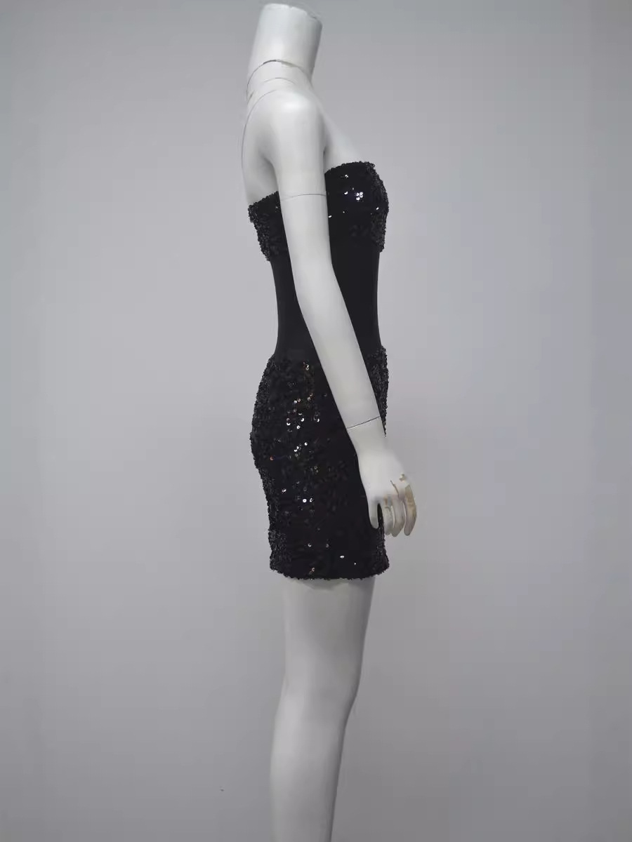 Women's Black Slim-Fit Strapless Sequin Mini Dress – Elegant Sleeveless Party Dress