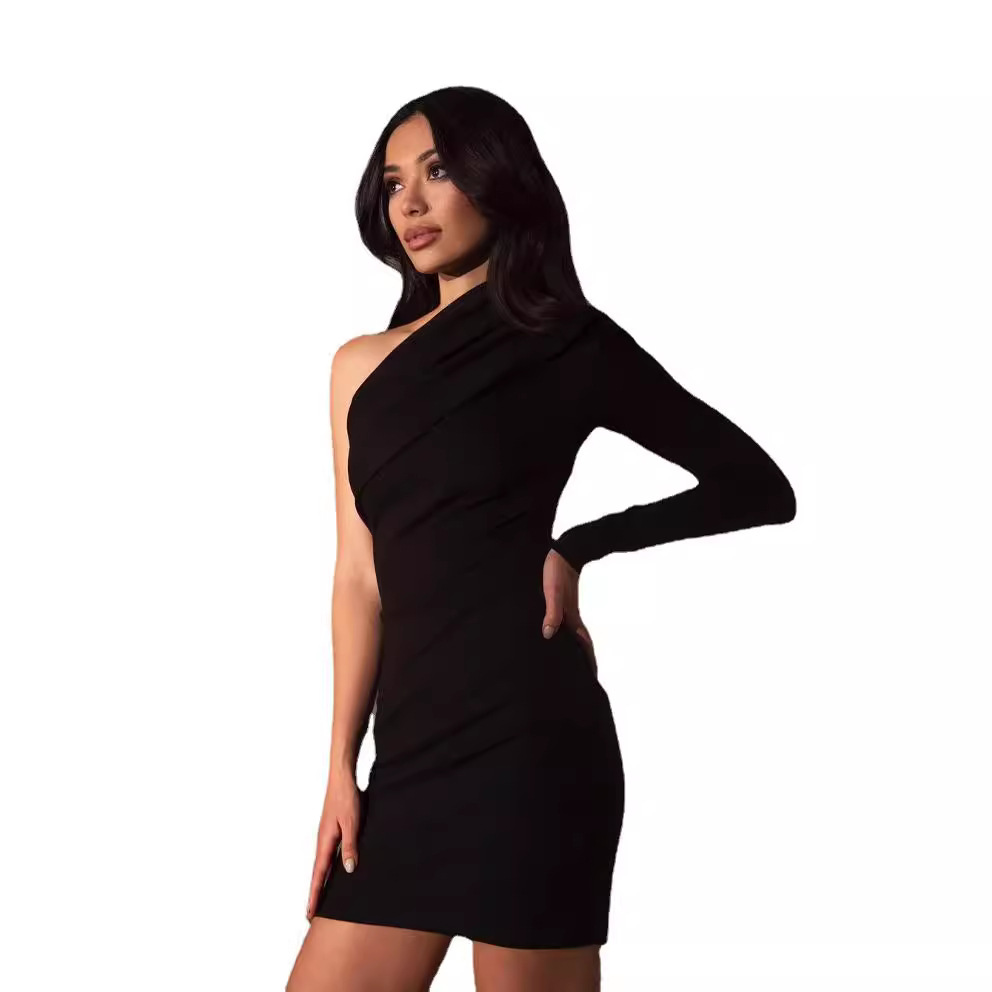 Women's One Shoulder Long Sleeve Tight Hip Bandage Dress