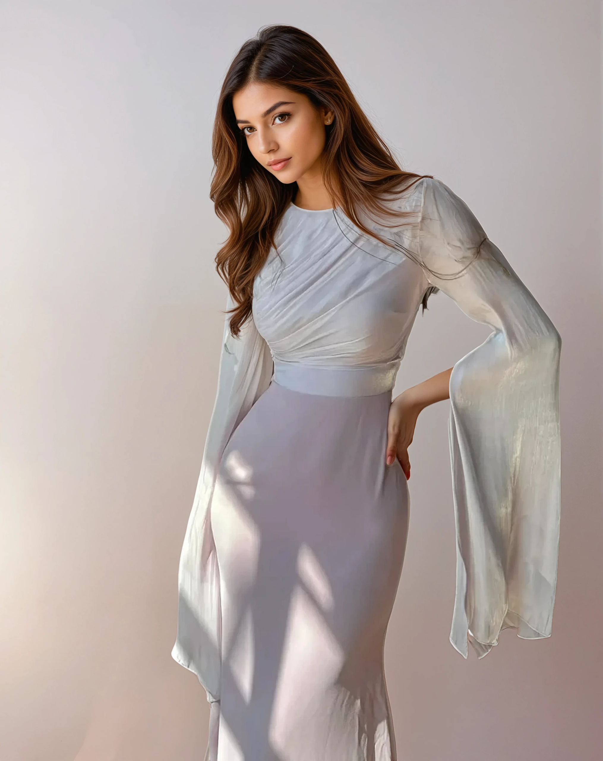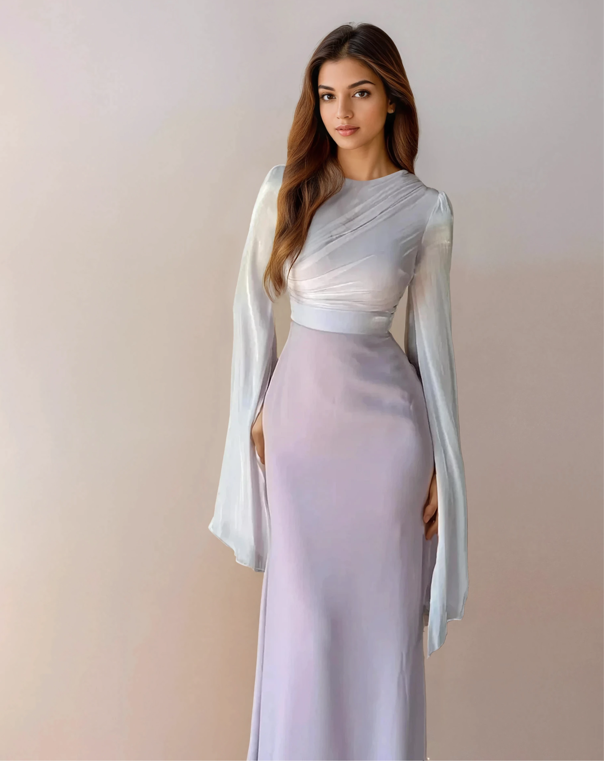 Baby Blue Modest Satin Gown with Flowing Split Sleeves – Maxi Length